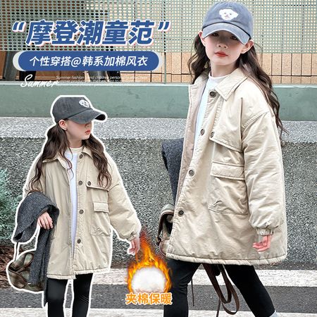 现货 女童加厚加绒连帽派克服